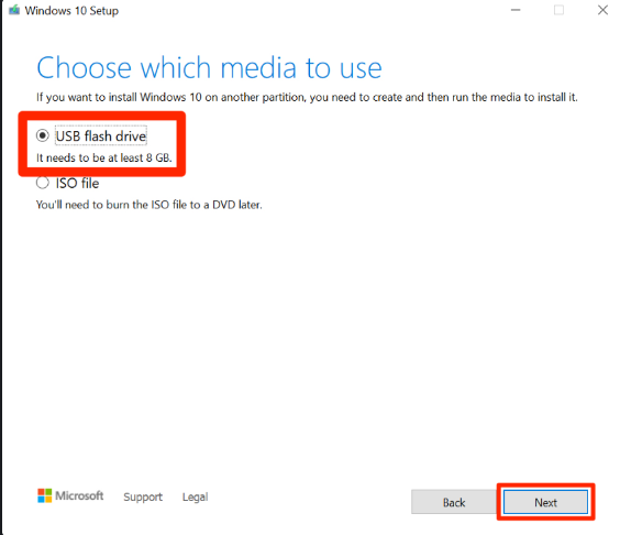 * Select **Create Installation media (USB Flash drive)**