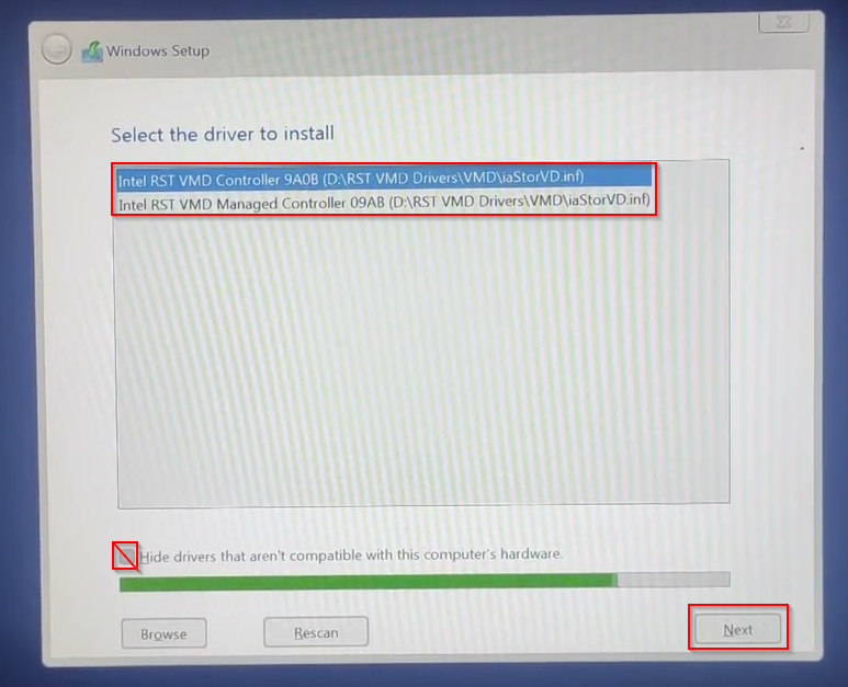 Press **Ctrl + A** to select all drivers, then click **Next**.